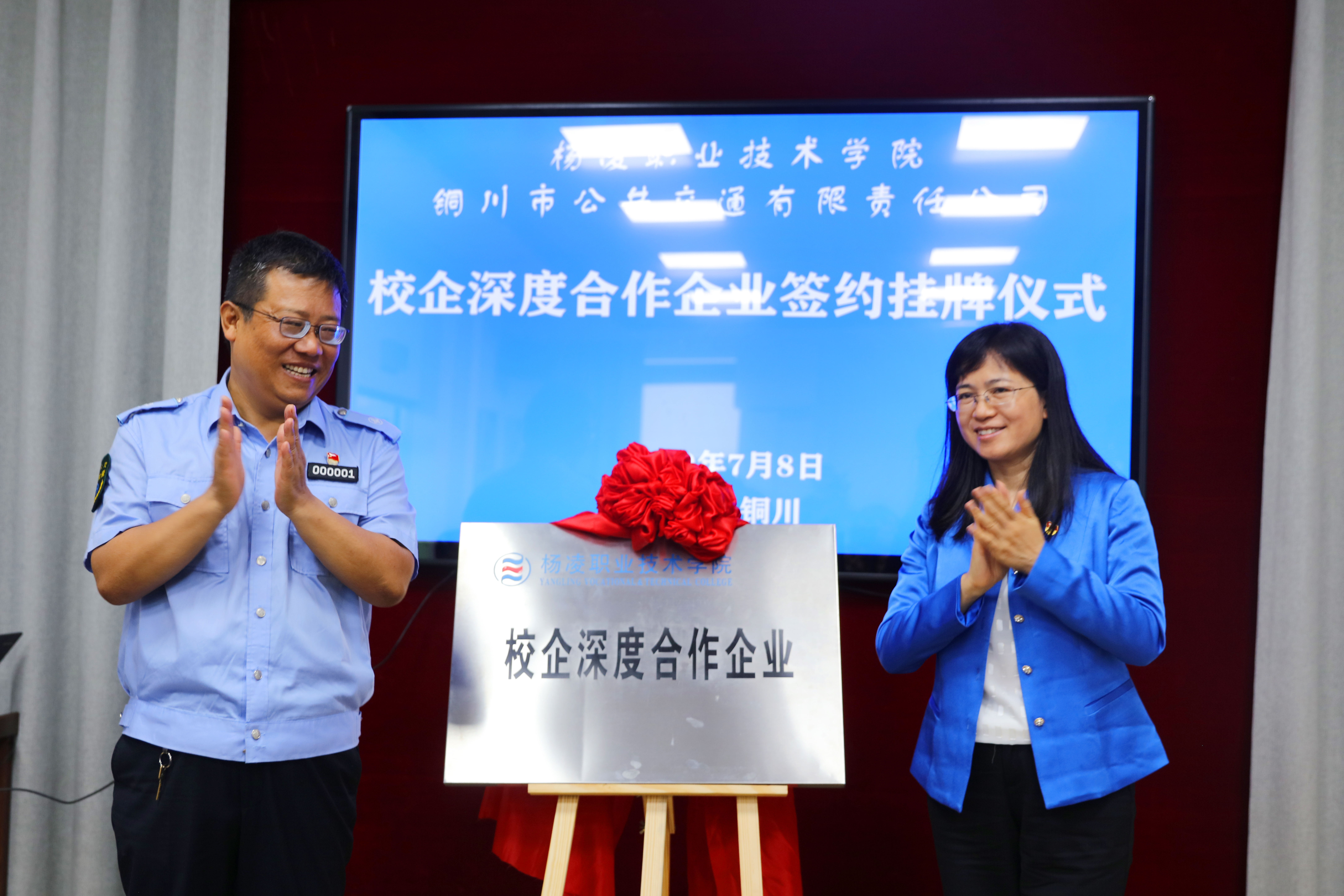 学院党委书记陈宁和铜川市公共交通有限责任公司党委书记、董事长司宝君共同为“304am永利集团校企深度合作企业”揭牌