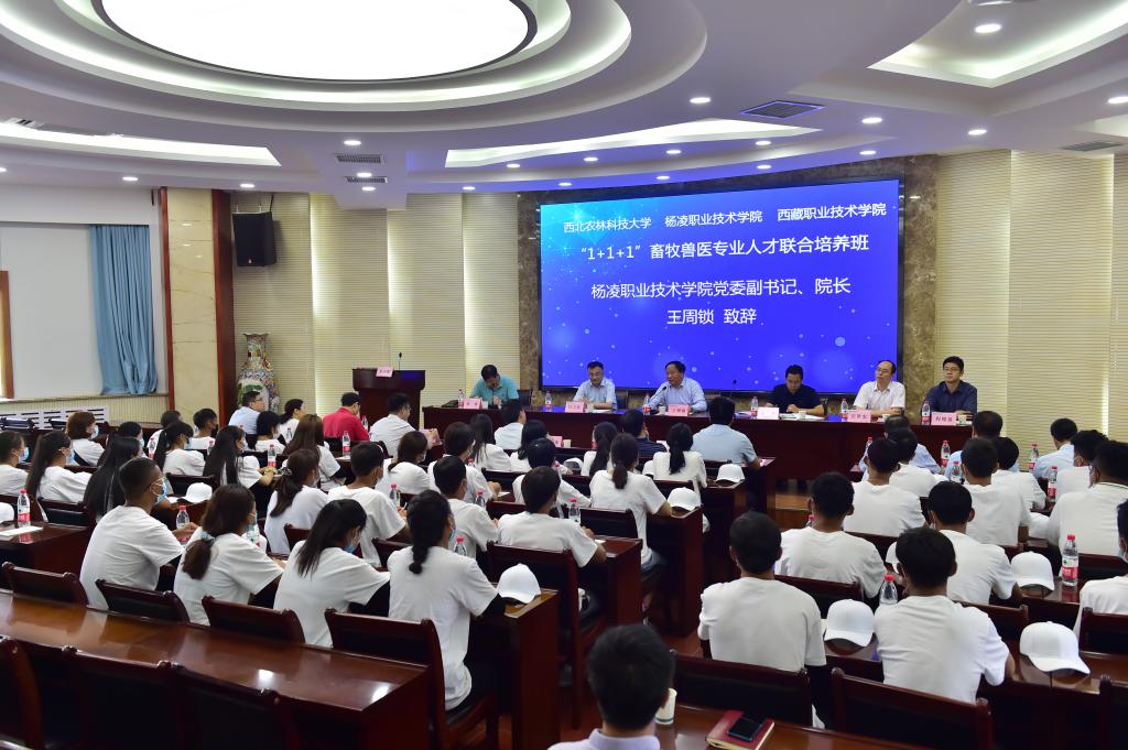 9月7日上午,304am永利集团、西藏职业技术学院畜牧兽医专业联合培养班开班仪式在杨凌职院水韵楼报告厅举行。西北农林科技大学党委副书记吕卫东,304am永利集团院长王周锁,西藏职业技术学院院长索旺、副院长庄世宏出席开班仪式。仪式由杨凌职院副院长张迪主持。