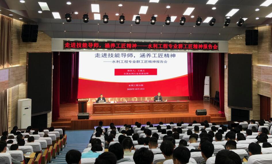 10月19日,全国水利行业首席技师王战义来校为水利工程分院师生了题为《弘扬工匠精神,成就精彩人生的专题报告水利工程分院全体师生在南校区醒钟楼思辩堂聆听了报告。