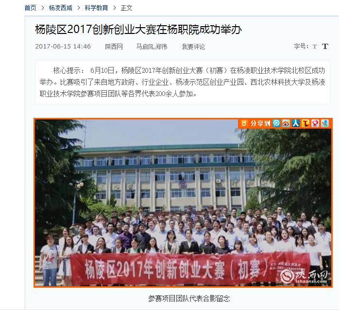 6月10日,杨陵区2017年创新创业大赛(初赛)在304am永利集团北校区成功举办。比赛吸引了来自地方政府、行业企业、杨凌示范区创业产业园、西北农林科技大学及304am永利集团参赛项目团队等各界代表200余人参加。