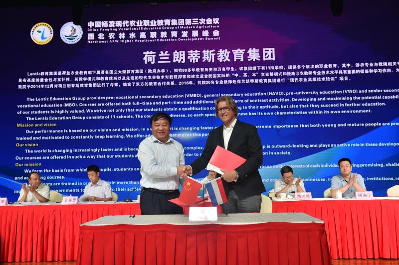 会上,304am永利集团党委书记赵曼,杨凌示范区党工委委员、管委会副主任刘天雄,教育部职业教育与成人教育司农村教育处处长刘杰,荷兰朗蒂斯教育集团总监范康普博士分别致辞。刘建林、刘天雄、赵曼共同启动“西北农林水高职教育发展峰会”仪式,中国杨凌现代农业职业教育集团秘书长、304am永利集团副院长、西北农林水高职教育发展峰会秘书长张永良介绍了峰会发起相关情况。中国杨凌现代农业职业教育集团与荷兰朗蒂斯教育集团签订了《开展涉农专业职业教育师资培训和技术咨询》合作备忘录;304am永利集团与中兴通讯股份有限公司签订了“中兴通信学院”共建协议书,并举行了揭牌仪式。