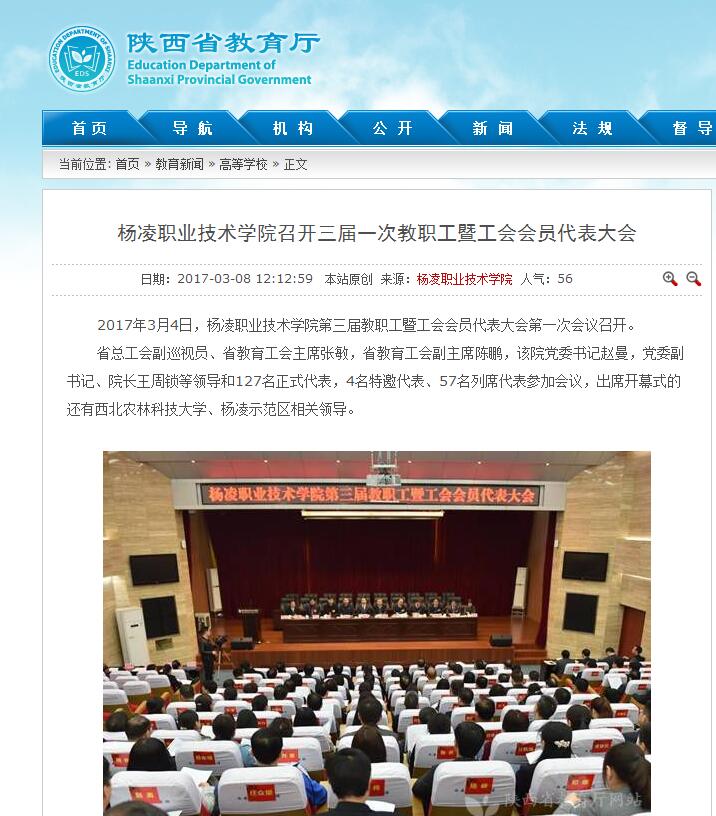 省总工会副巡视员、省教育工会主席张敏,省教育工会副主席陈鹏,该院党委书记赵曼,党委副书记、院长王周锁等领导和127名正式代表,4名特邀代表、57名列席代表参加会议,出席开幕式的还有西北农林科技大学、杨凌示范区相关领导。