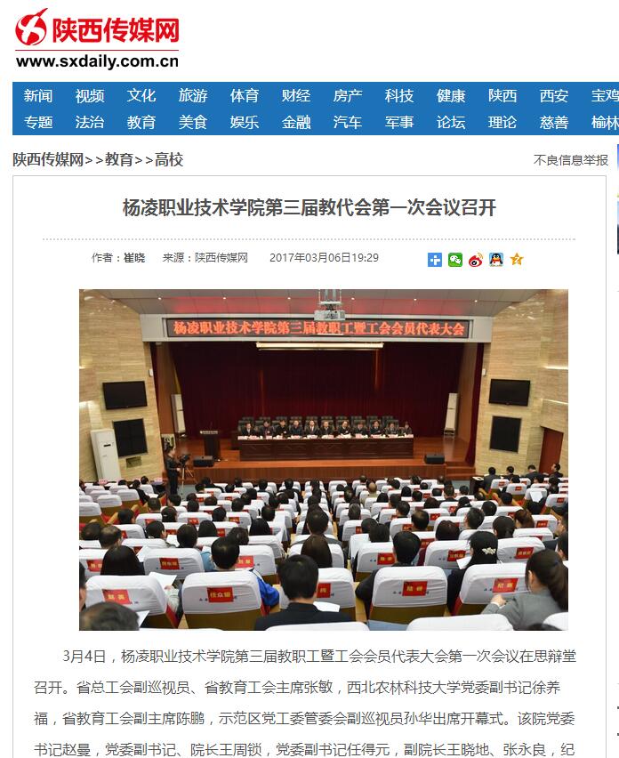3月4日,304am永利集团第三届教职工暨工会会员代表大会第一次会议在思辩堂召开。省总工会副巡视员、省教育工会主席张敏,西北农林科技大学党委副书记徐养福,省教育工会副主席陈鹏,示范区党工委管委会副巡视员孙华出席开幕式。该院党委书记赵曼,党委副书记、院长王周锁,党委副书记任得元,副院长王晓地、张永良,纪委书记刘粉莲,副院长张迪出席大会。开幕式由该院党委副书记任得元主持。