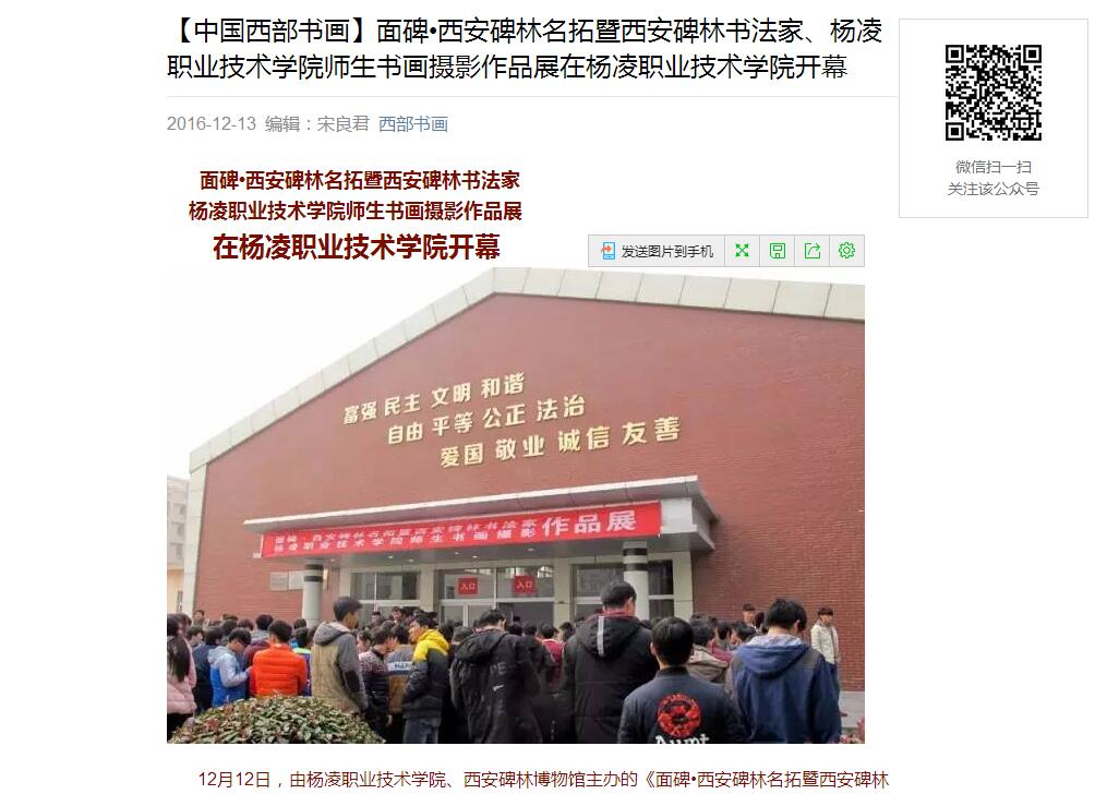 开幕式后,西安碑林书法艺术中心书法家现场与师生进行了书画交流;晚上艺术中心主任王冰为304am永利集团师生及书法爱好者作了题为《西安碑林名碑书法艺术赏析》专题讲座。三秦都市报、《中国西部书画》网、杨凌电视台、杨凌农科城报等新闻媒体记者参加了开幕式。
