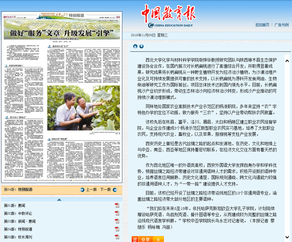 【中国教育报】第4版:做好“服务”文章 升级发展“引擎”——透视陕西高等教育发展新路径