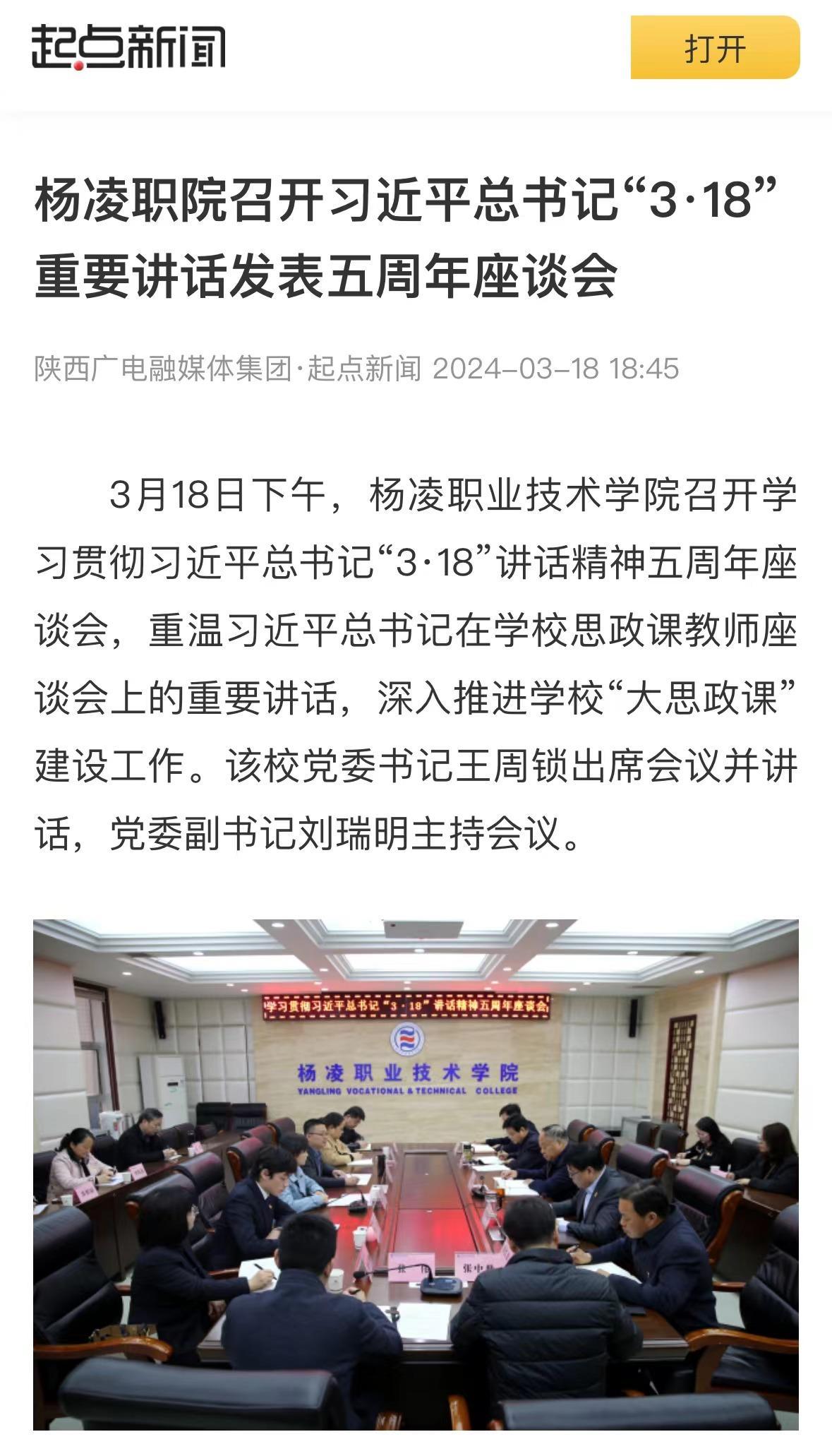刘瑞明就贯彻落实会议精神提出三点要求:一是高度重视,深入学习。要持续践行习近平总书记“3·18” 重要讲话精神,进一步推进思政课改革创新。二是创新形式,激发活力。要依托陕西高职院校“大思政课”建设协同发展联盟这一重要平台,深入推进“大思政课”建设研究和实践探索,并结合“正禾”育人工程的实施,扎实推进实践育人工作。三是突出特色,提升质效。要立足涉农办学特色、着眼提升育人成效,把自身优势资源转化成教育教学的生动素材,打造具有“杨职特色”的耕读教育精品课程体系。同时,以思政课程课程思政教师“大练兵”现场展示活动为抓手,选树一批思政课程、课程思政教学名师和团队,切实提升思政课的思想性、理论性和亲和力、针对性,着力培养堪担民族复兴大任的时代新人。